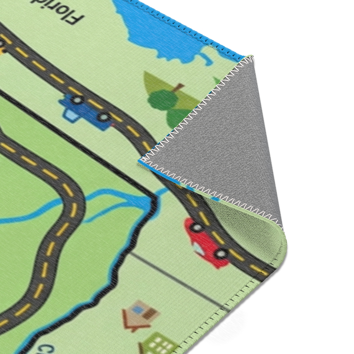 Here's what our customers receive: vibrant, high-quality play mats printed on soft chenille rugs that kids love.