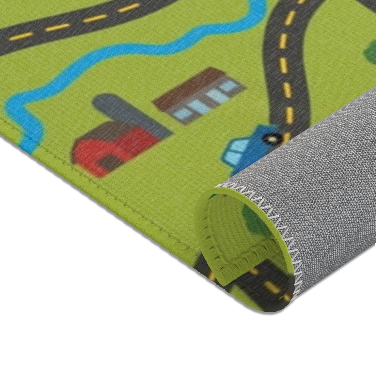 Here's what our customers receive: vibrant, high-quality play mats printed on soft chenille rugs that kids love.